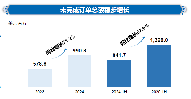 订单储备充足:未完成订单总额达13.29亿美元,同比增长57.9%,为业绩兑现提供保障。