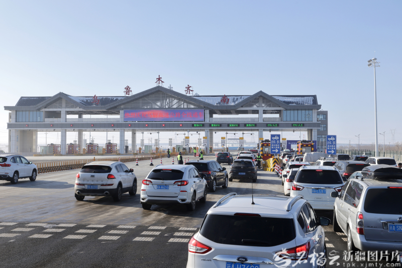 12月26日,G0711乌鲁木齐至尉犁高速公路全线通车。图为车辆在乌尉高速乌鲁木齐南收费站排队过站。石榴云/新疆日报记者 崔志坚摄